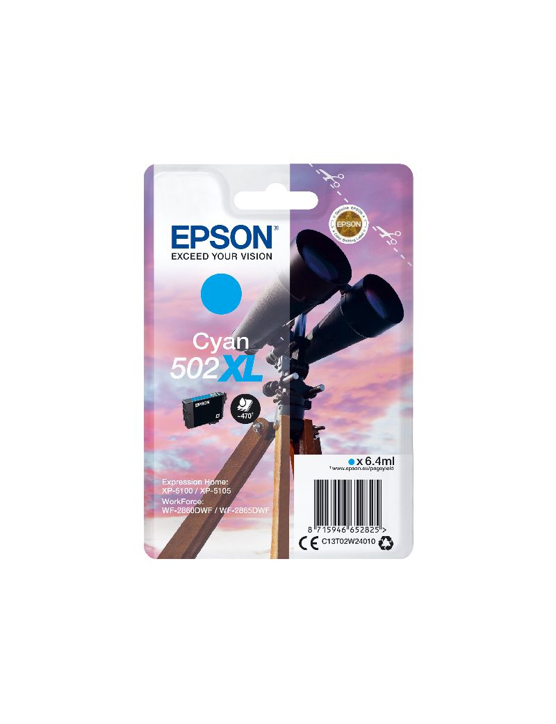 EPSON XP-5100, XP-5105, WF-2860DWF, WF-2865DWF EPSON Singlepack Cyan 502XL Ink