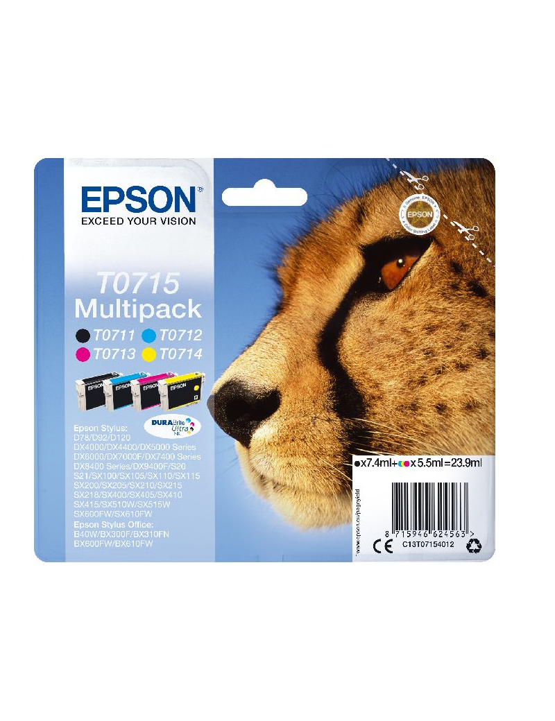 Epson Stylus D-78/92/120/SX218 DX-4000/5000/6000/7000F Pack 4 Cartuchos (T0711+T0712+T0713+T0714)