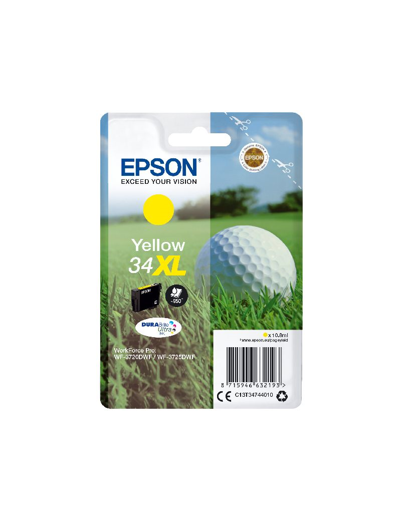 Consumibles: Cartuchos de tinta, Epson DURABrite? Ultra, 34XL, Bola de golf, Embalaje individual, 1 x 10,8 ml Amarillo, XL, RF+AM EPSON Singlepack Yellow 34XL DURABrite Ultra Ink