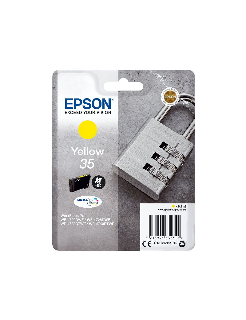 Consumibles: Cartuchos de tinta, Epson DURABrite? Ultra, 35, Candado, Embalaje individual, 1 x 9,1 ml Amarillo, RF+AM EPSON Singlepack Yellow 35 DURABrite Ultra Ink