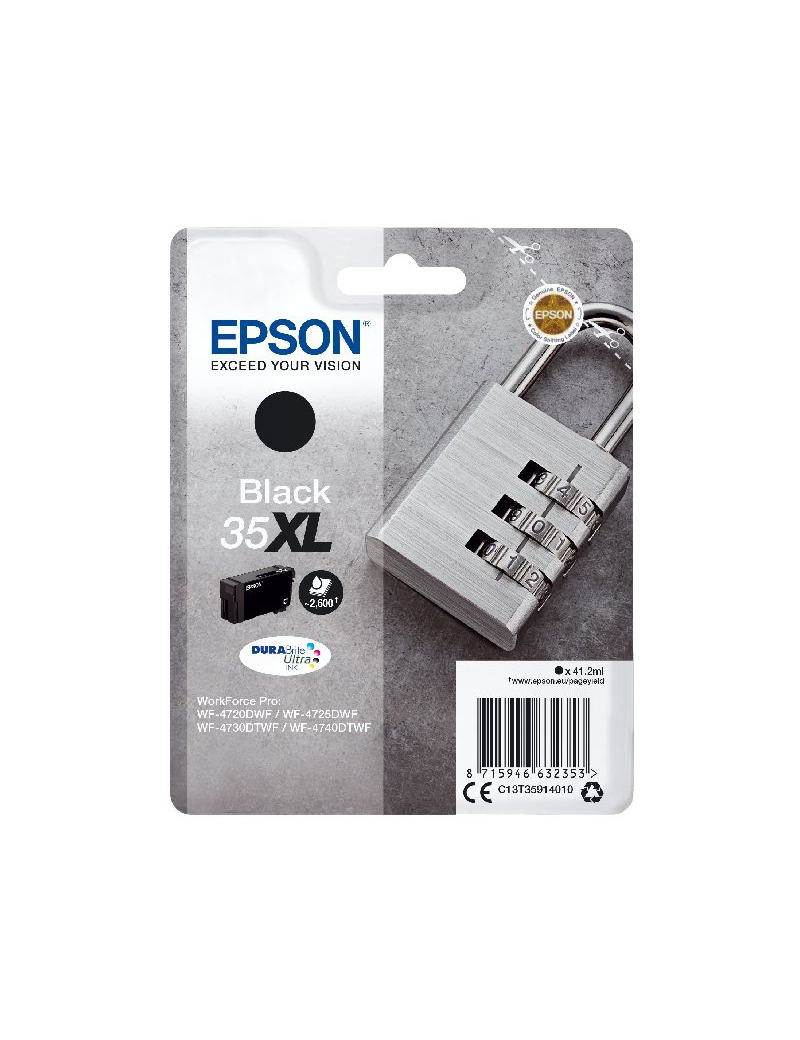 Consumibles: Cartuchos de tinta, Epson DURABrite? Ultra, 35XL, Candado, Embalaje individual, 1 x 41,2 ml Negro, XL EPSON Singlepack Black 35XL DURABrite Ultra Ink