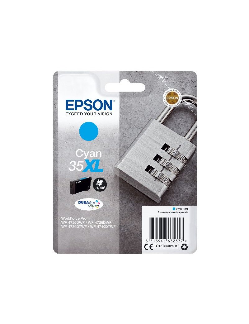 Consumibles: Cartuchos de tinta, Epson DURABrite? Ultra, 35XL, Candado, Embalaje individual, 1 x 20,3 ml Cian, XL, RF+AM EPSON Singlepack Cyan 35XL DURABrite Ultra Ink