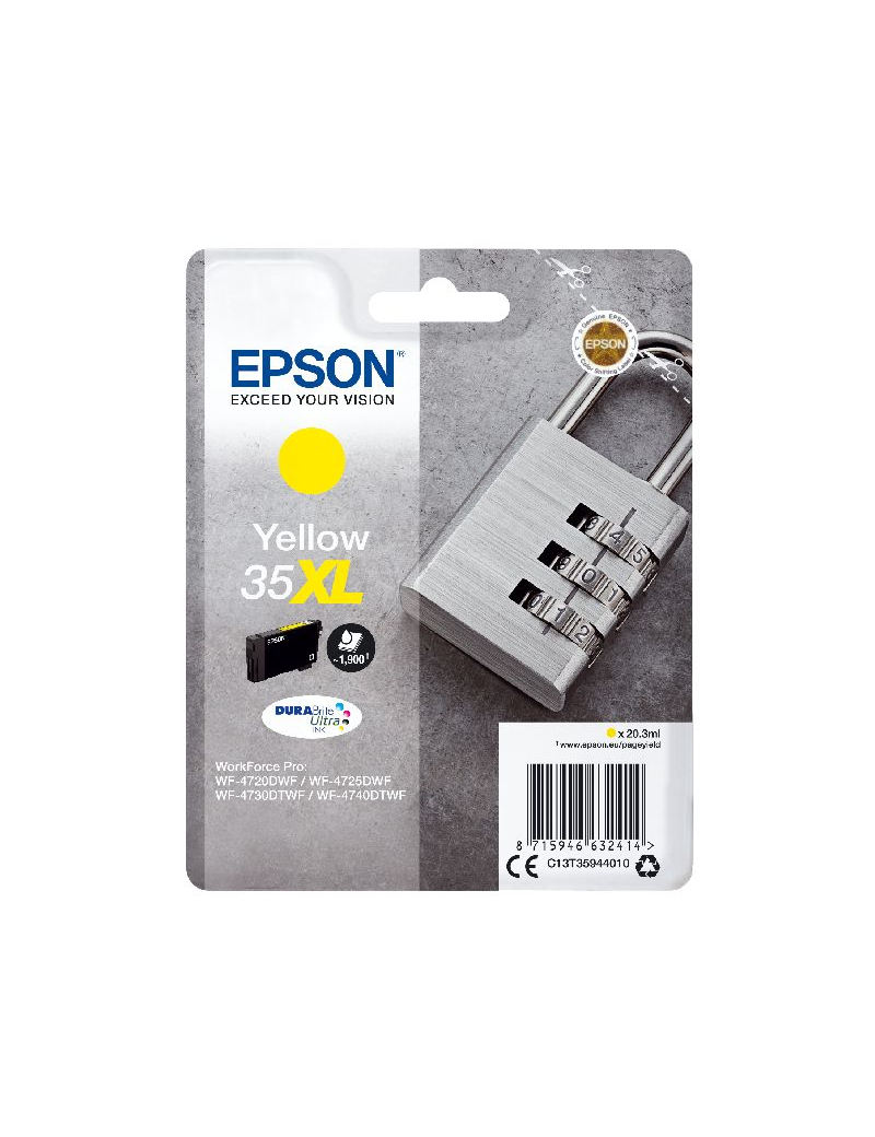Consumibles: Cartuchos de tinta, Epson DURABrite? Ultra, 35XL, Candado, Embalaje individual, 1 x 20,3 ml Amarillo, XL, RF+AM EPSON Singlepack Yellow 35XL DURABrite Ultra Ink