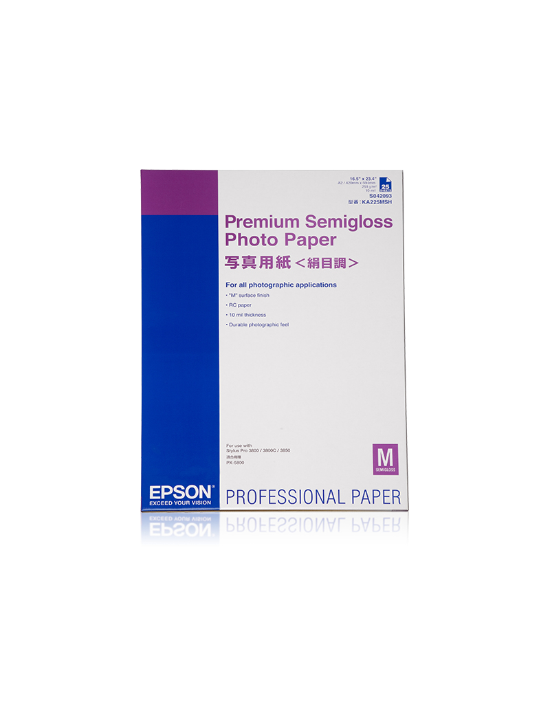 420 mm x 594 mm (A2) Epson GF Papel Premium SemmiGloss Photo A2, 25 hojas - 250 g/m2