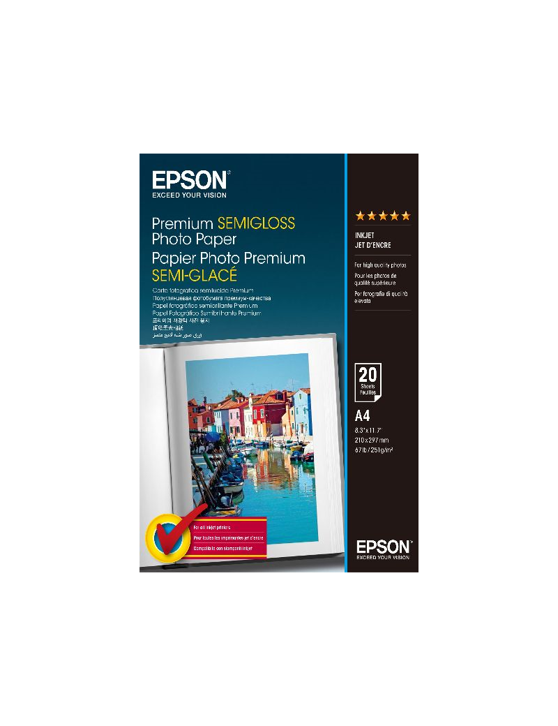 Epson Papel Fotográfico Semibrillo (Premium SemiGlossy Photo) A4, 20 Hojas de 251g.