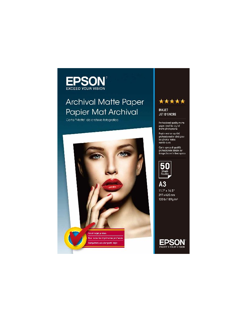 Epson Papel Mate Larga Duración (Archival Matte Paper) A3, 50 Hojas de 189g.