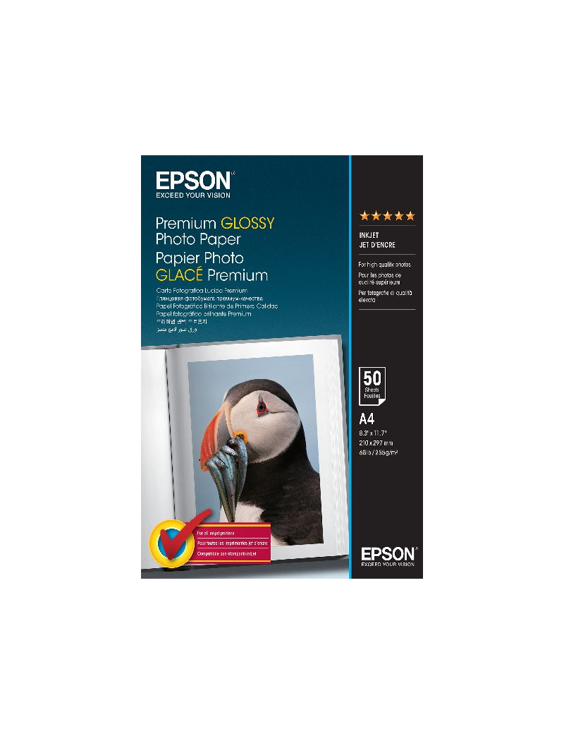 Epson Papel Premium Glossy Photo 255g, 50 Hojas de A4